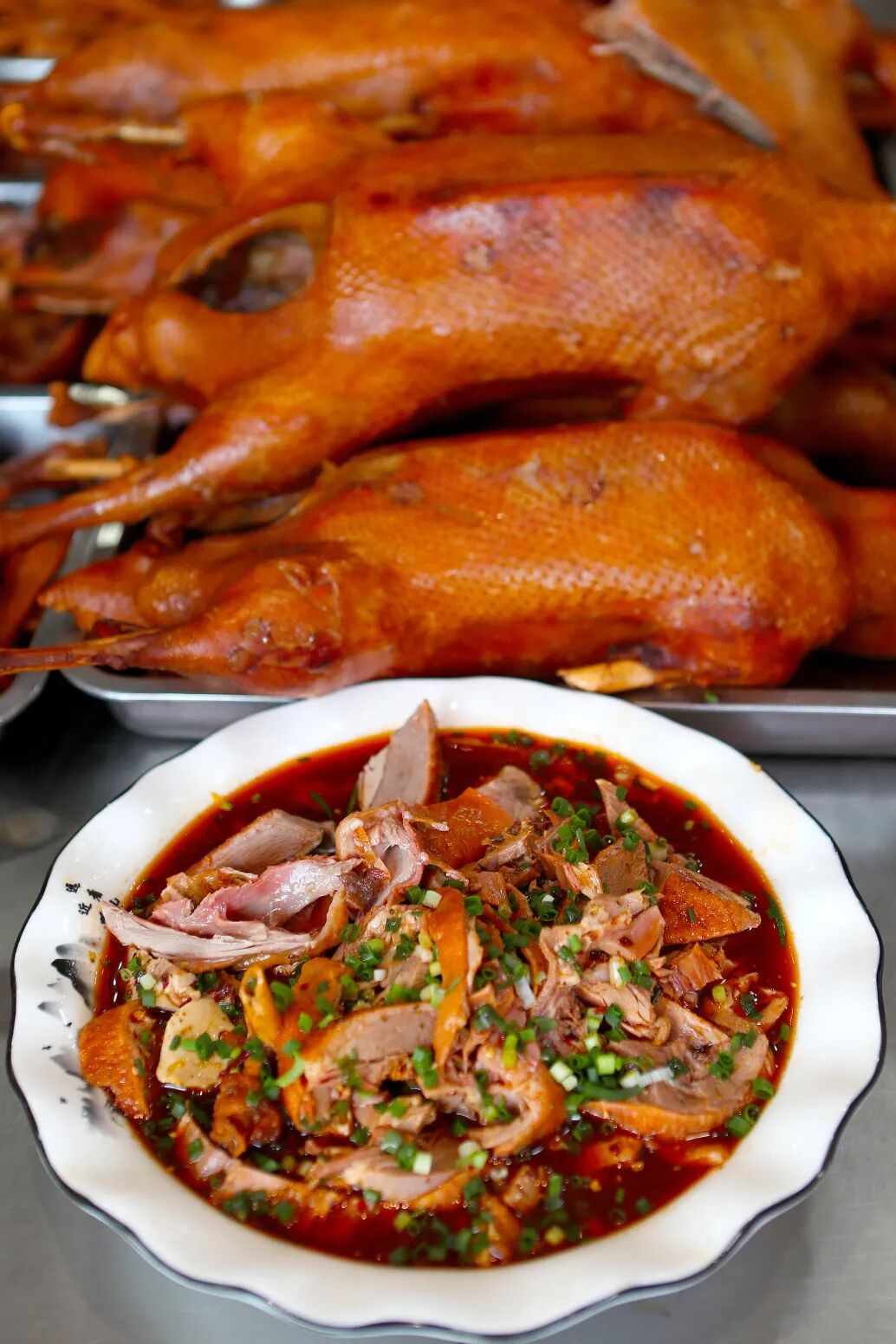 没想到这一创新让老鹅的食用风味更佳,四川的麻辣与洪泽的鹅实现了优势互补。这道“跨界创新”的美食,一经推出便引发轰动,在口口相传中迅速发酵。