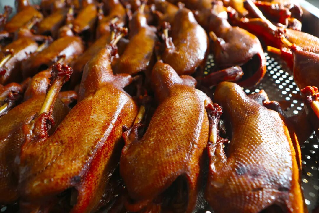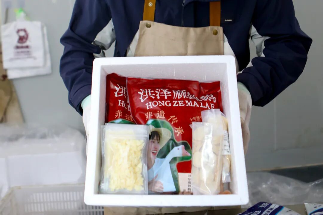 走进位于洪泽电子商务产业园的非遗工坊,自动化卤锅冒着氤氲热气,老鹅在锅中匀速翻滚,卤汤的香气透过通风管道弥漫整个车间;包装车间里,工人们身着统一工作服,在自动化生产线上忙碌,切好的鹅块快速分装、真空包装,等待发往全国各地。